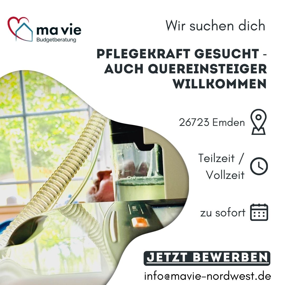 Wir suchen zu sofort in VZ / TZ (insgesamt 160 Wochenstunden) eine Pflegekraft (auch Quereinsteiger sind willkommen – es kann alles angelernt werden!) in der 1:1 Betreuung. Unsere Anforderungen: ◦ einen freundlichen und emphatischen Umgang mit unserem Kunden: männlich, mittleren Alters, ALS-erkrankt, bettlägerig ◦ Lernbereitschaft und gute Auffassungsgabe besonders als Quereinsteiger ◦ Bereitschaft zu Schichtarbeit (Mo-Fr: 7-14 / 14-22; Sa: 9-21; So 10-20 Uhr) ◦ Gute Deutschkenntnisse (mind. B2) ◦ hohes Engagement, Teamfähigkeit und Zuverlässigkeit Ihre Aufgaben: ◦ Teilweise Haushaltsführung ◦ Beaufsichtigung und Kontrolle der Beatmungsparameter ◦ Endotracheales absaugen ◦ Nahrungsaufnahme überwiegend über die PEG Was Sie erwartet: ◦ Faire Bezahlung je nach Berufserfahrung und Qualifikation (TVÖD) - ab 17,41€/Std. bereits für Quereinsteiger ◦ Eine gute Einarbeitung ◦ Ruhiges, stressfreies, familiäres Arbeitsumfeld ◦ Faire Dienstplan-Mitgestaltungsmöglichkeit ◦ 28 Tage Urlaub basierend auf einer 5-Tage-Woche ◦ Sonn- und Feiertagszuschläge ◦ Nette Teamkollegen, ein paar liebenswerte Katzen, Freigetränke (Kaffee, Tee, Wasser) und am Wochenende eine exzellente, gratis Mittagsverkostung am Arbeitsplatz Für eine schnelle Bearbeitung, alle weiteren Fragen gerne unter 0492125830 erfragen.