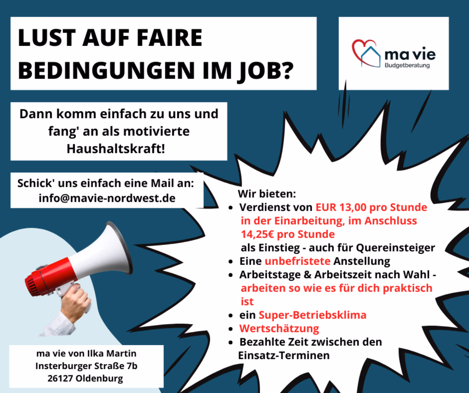 Haushaltskräfte mit Herz gesucht! Wir sind ein Anbieter, der pflegebedürftigen Menschen Unterstützung im Haushalt anbietet. Ihre Aufgabe wäre es, unsere Kunden bei der hauswirtschaftlichen Versorgung zu unterstützen. Sie bekommen einen festen Kundenstamm und können bei der Arbeitszeitgestaltung viel Einfluss ausüben. Die Kunden sind bereits da und warten nur darauf Sie kennen zu lernen. Wir bieten: * Verdienst von EUR 13,oo pro Stunde als Einstieg - auch für Quereinsteiger * EUR 50,00 Gutschein als steuerwerter Vorteil nach der Probezeit * Eine unbefristete Anstellung * Arbeitstage & Arbeitszeit nach Wahl - arbeiten so wie es für Sie praktisch ist * ein Super-Betriebsklima * Wertschätzung * bezahlte Zeit zwischen den Einsätzen (PKW und Führerschein erforderlich)